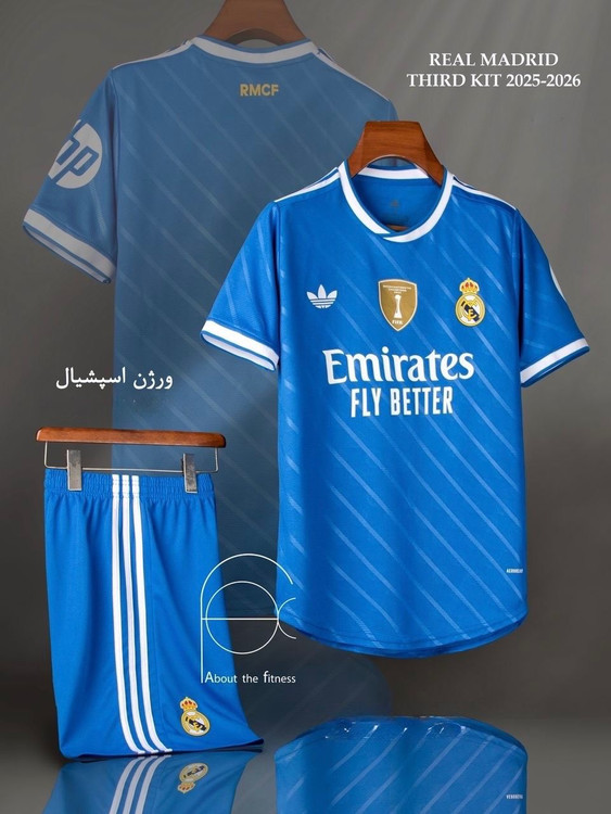 کیت فوتبال تایلندی رئال مادرید 2025 -2026 لباس سوم ، ست تیشرت و شورت ، ورژن هوادار ، تایلندی