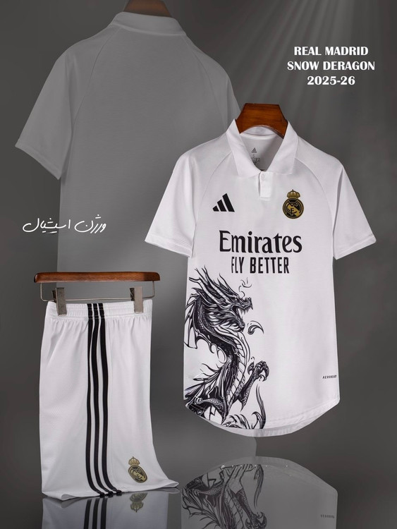 کیت فوتبالی دراگون برفی رئال مادرید2025-2026 ، ست تیشرت و شورت ، ورژن هوادار ، تایلندی