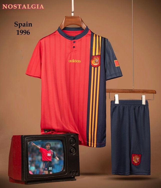 کیت فوتبالی نوستالژی تیم ملی اسپانیا 1996 ، ست تیشرت و شورت ، ورژن هوادار ، تایلندی